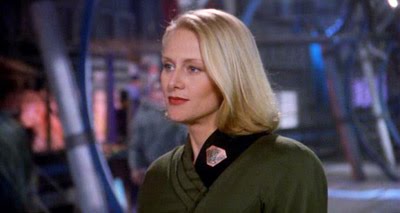 Telepathic women naturally scare me, and Talia is a bit of an ice princess, however... Here, it's all about the implied sexual relationship between her and Susan Ivanova. What is it about the potential for girl-on-girl action that fascinates men so? The superficial answer is that you get twice the women and none of the men (stuff we want to see versus stuff we don't). The deeper answer is that it's taboo. And I don't mean that it's wrong in any way, but that it's a place where men are not invited. It gives it its mystery and allure. And I'm sure such relationships are for the most part misrepresented in media, being male fantasies rather than the (unknowable to men) real thing. The Talia/Ivanova relationship scores highly exactly because it IS implied and not truly seen.76. Susan Ivanova from Babylon 5 (Claudia Christian)