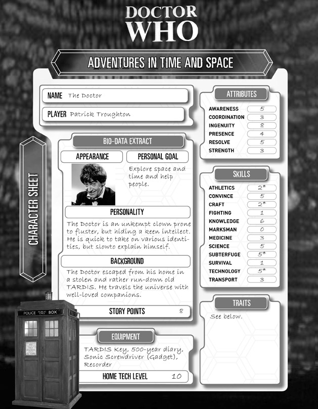 Time Lord - The second Doctor does not get the Traits Feel the Turn of the Universe or Vortex, making this Trait cost only 3 Story Points