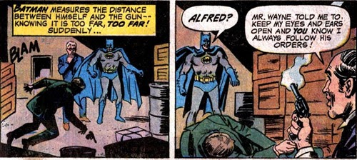 -Alfred gets the kill shot on the head spy. Does Batman allow his butler to carry a gun?! Sheesh! But good on you, Alfred. +1 Bat-point