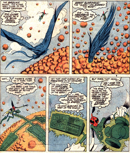 It only has the mind of whatever it's absorbed, and that gives ol' TO-T-U-K (unnamed here, but Green Lantern/Sinestro Corps Secret Files and Origins provides) a chance to continue his career, in a way. He never wanted to retire. So he jumps into the "queen", is digested and becomes what I would guess is the Green Lantern who best covers his Sector!